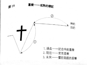 - 有关过去的喜乐指的是,当我们想起如下事情时感受到的喜乐:因基督的救赎而罪得赦免(弗1:7)、与神相和(罗5:1-2),得以进到父面前(弗2:18)。现在的喜乐指的是,有份于下列事情而感受到的喜乐:常在神里面(约15:5),靠祂一无所缺(腓4:11-12),厚赐百物给我们享受的神(提前6:17)。未来的喜乐指的是因期盼如下事情而感到喜乐:那摆在基督面前的有关父神的心意,以及父神对众子的目标(来12:1-2),与弟兄们互相交通有关神的一些心意(约壹1:2-4),把生命倾倒出来,为了其他信徒,成为一个祭物(腓2:17-18)。
